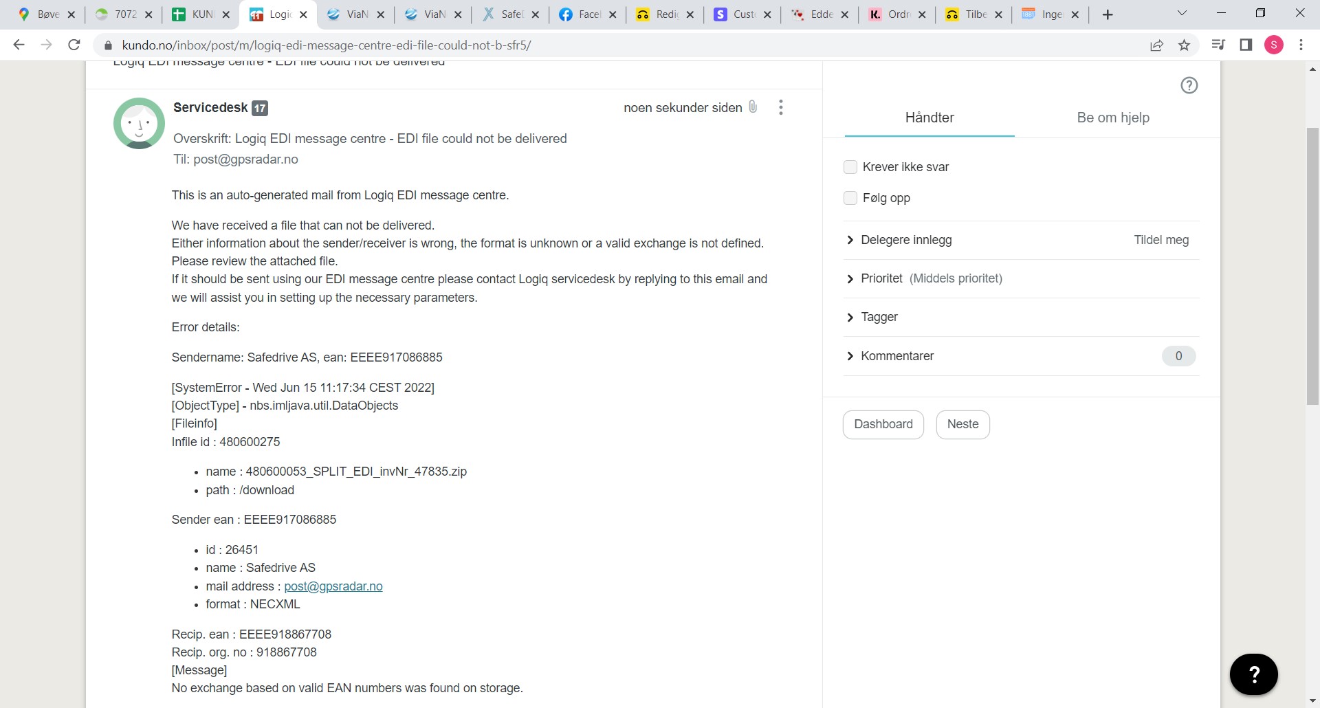 Mail fra «servicedesk logiq»